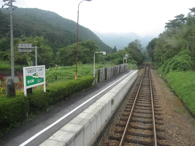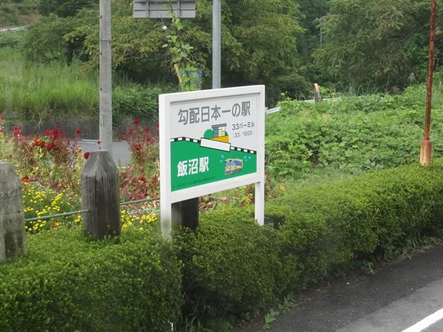 恵那方面からだと終点までひたすら上り勾配が続きます。写真に写っているのは,普通鉄道としては日本一急勾配な場所にある飯沼駅。