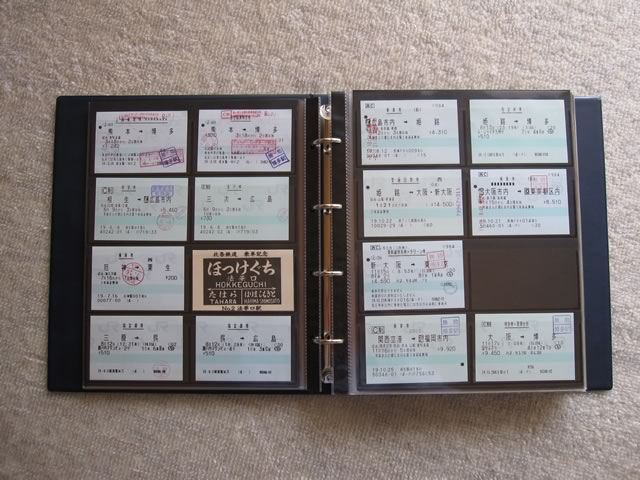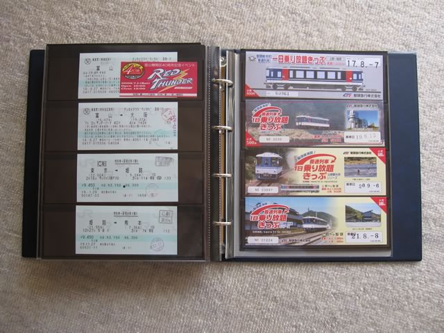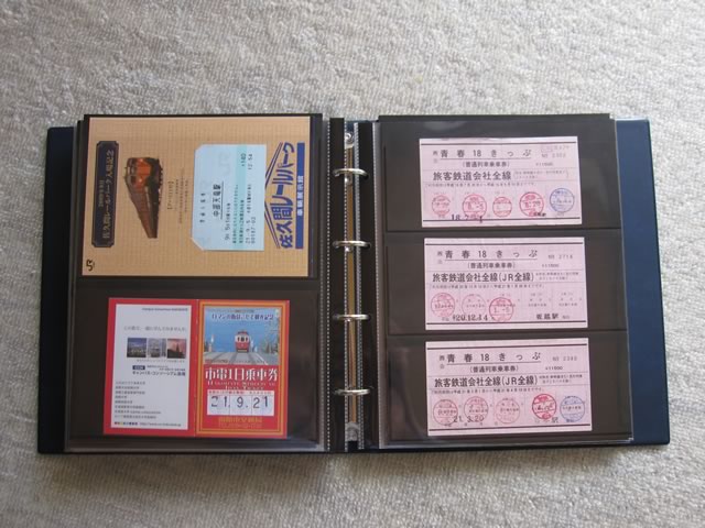 台紙一枚ごとに全体を覆う保護用の袋が付いているため,ページ同士が擦れてしまうこともなく,長期保存に適しているのではないかと思います。もっとも,コチラも切符の枚数が多ければそれだけ出費がかさみますが(^ ^;;)。