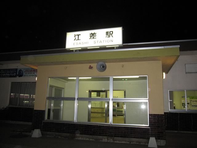 日没後に到着した最果ての江差駅〜。でも,意外と大きな駅舎。