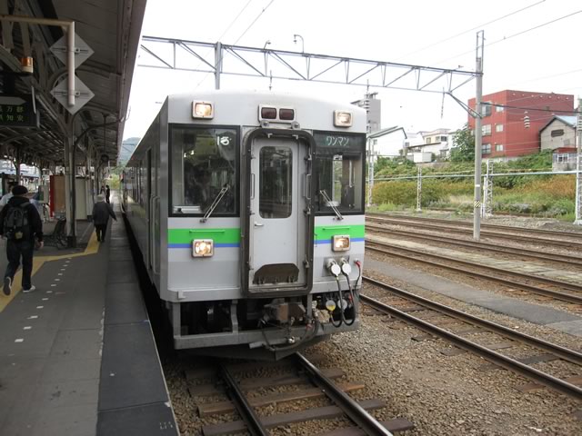 小樽駅で長万部行きの列車に乗車。本数が少ないからかよく混んでいましたねー。車両は,キハ40系とキハ150系の混結でした。