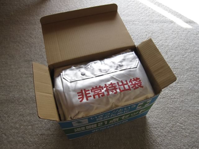 クレジットカードでためたポイントが失効間近になったので,適当なグッズがないかを調べていたところ,「防災非常袋」なるものが目にとまり,ついポイント交換してしまった。本当は商品券あたりが汎用性があって還元率もいいのだろうけど,ジブンではなかなか買おうとは思うない(けどあったらあったで役立つ)ものと引き替えるタチなので〜。