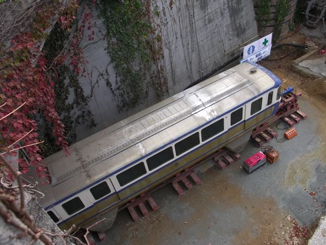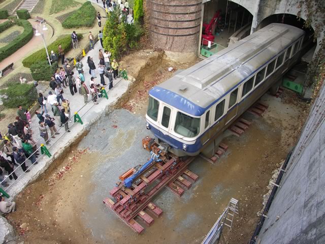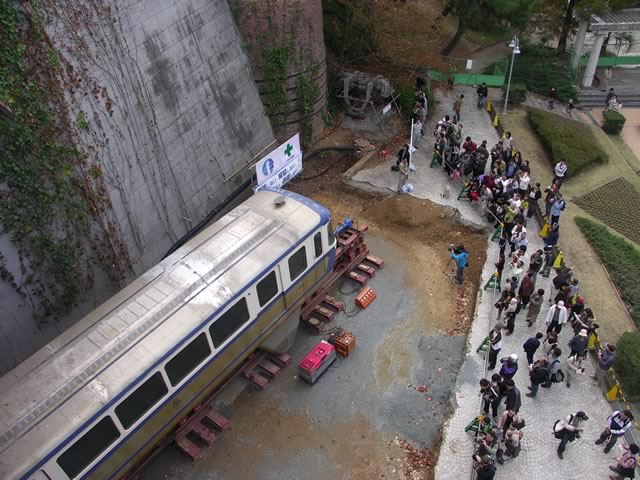 いまでは現存路線のないロッキード式モノレールの車両がほぼ完全な形で残っている希少性もさることながら,結果的に35年間も車庫で眠っていたという歴史がなんだかロマンをかき立てますねー。ちなみに,4両残っていた車両のうち2両は,駅のプラットホームがあった場所まで移動され,再来年から常設展示されるそうです。もっとも屋外に出されるのは今回だけなので,非常に貴重なイベントだったと思います。