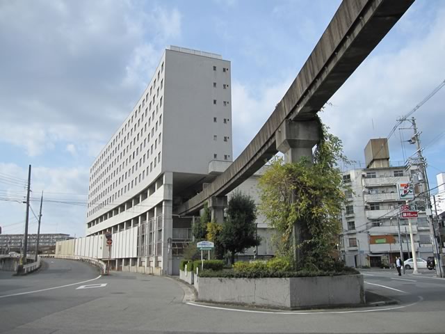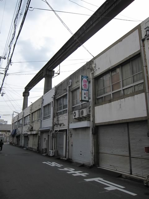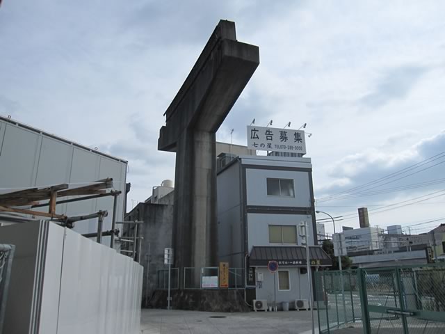 姫路駅から手柄山までの道のりには,今でもモノレールの軌道桁が随所に残っています。レールが引き込まれ中空構造になっているビルの中には,かつて大将軍駅という仰々しい名前の駅が存在したそうです。なお最後の写真のあたりにモノレール姫路駅があったと思われます。