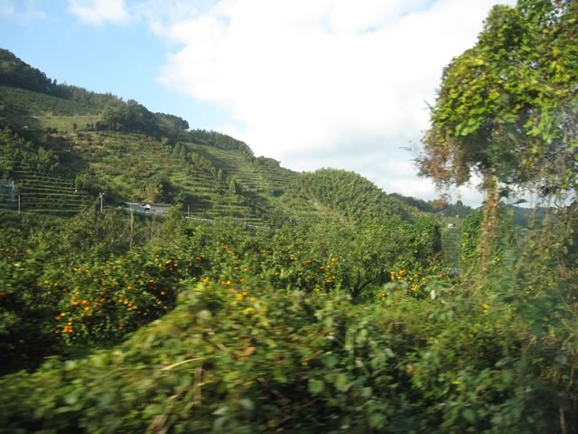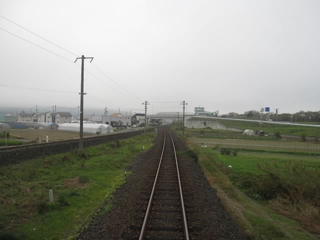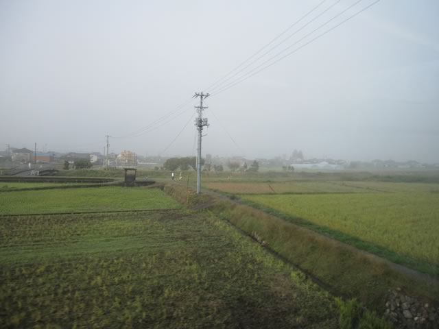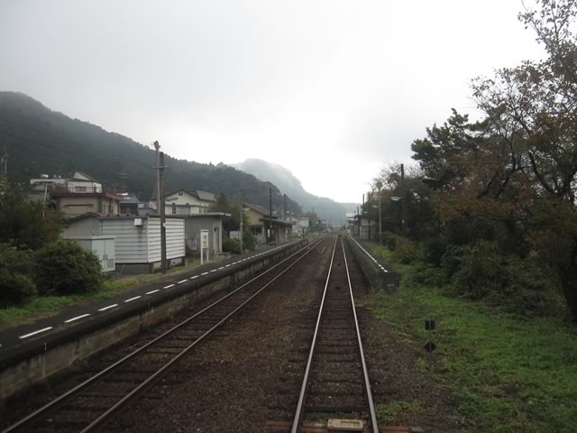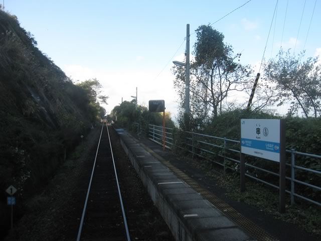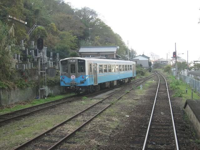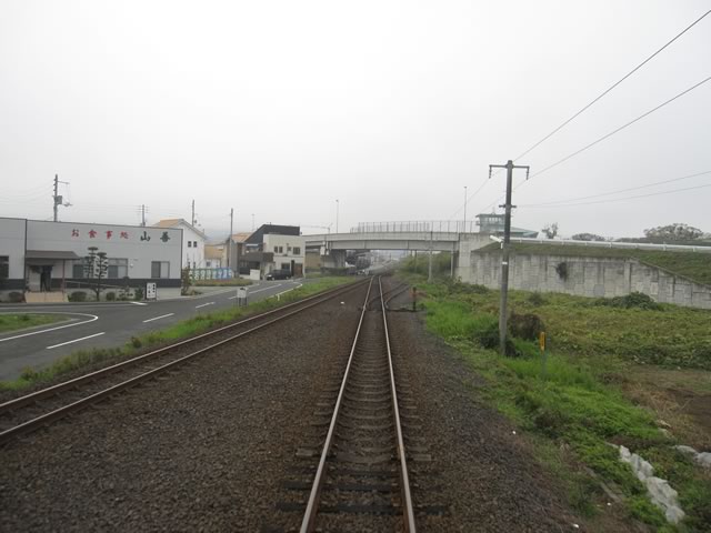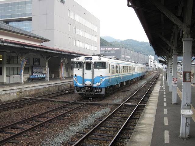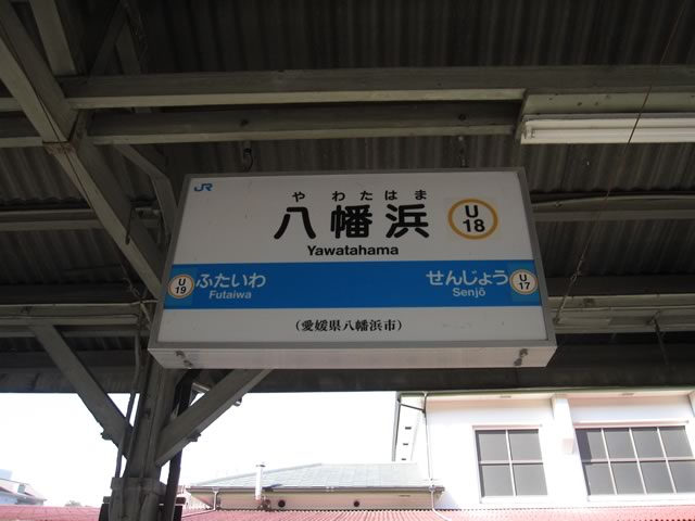 再び靄がとけてきたらもう八幡浜。ここで下車し,伊予高松回りの予讃線普通列車に乗り換えます。向井原−伊予大洲間は古くからの路線(伊予長浜回りの予讃線)と内子経由の新線(内子線)の2ルートがあり,特急は全て内子回りになるため,海側を走るには普通列車に乗るしかないのですねー。