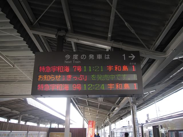 松山着。このまま岡山方面には帰らず,今度は内子回りの特急宇和海7号に乗車。
