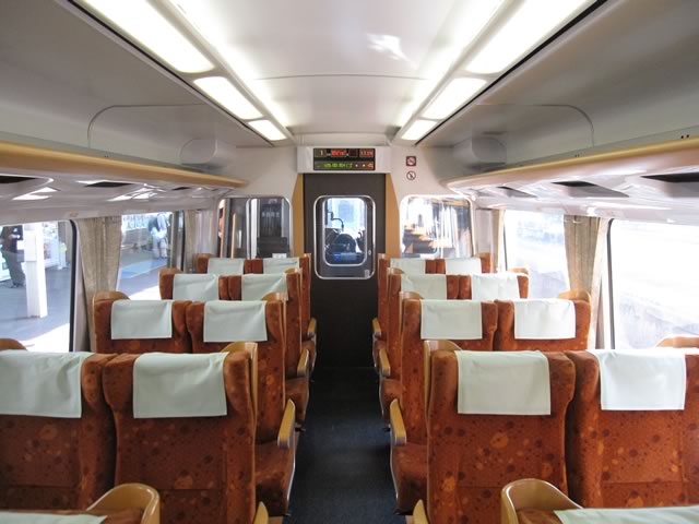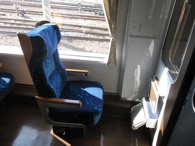 最後は特急しおかぜ20号。木目調の座席が特徴的です。伊予市から電化されているので,松山〜岡山間の特急は電車になります。