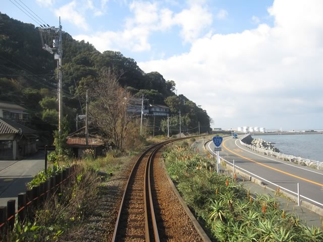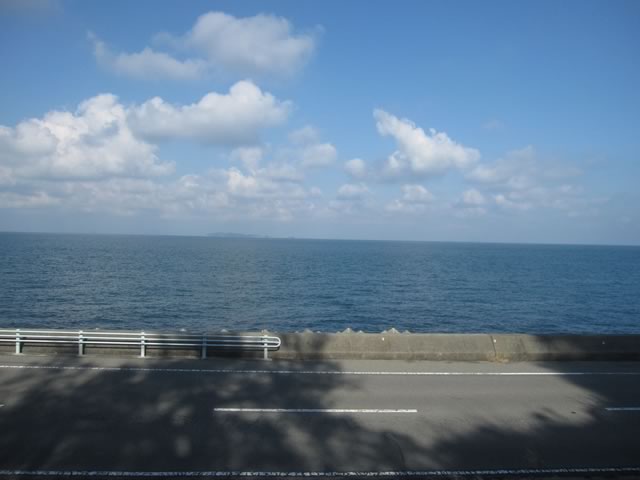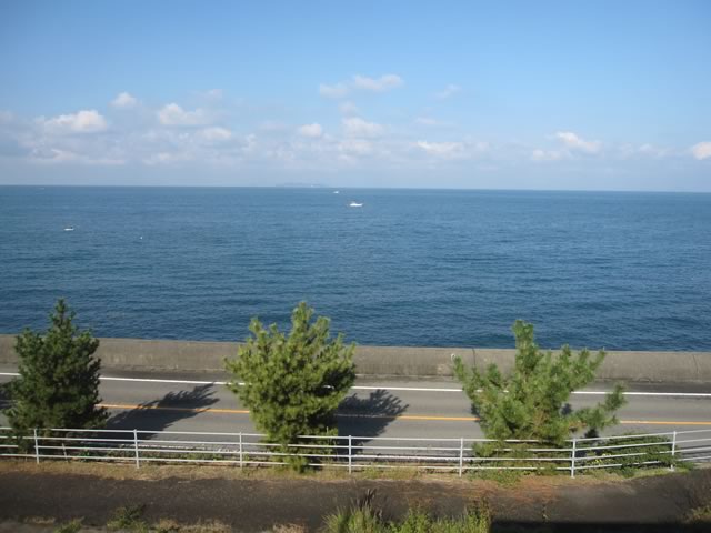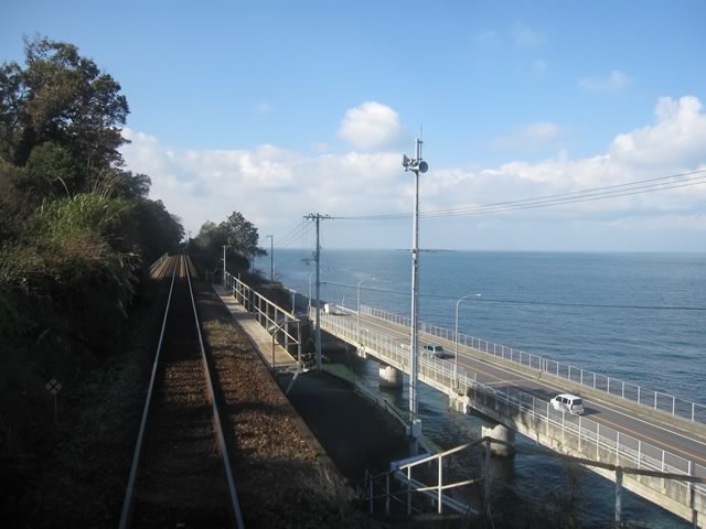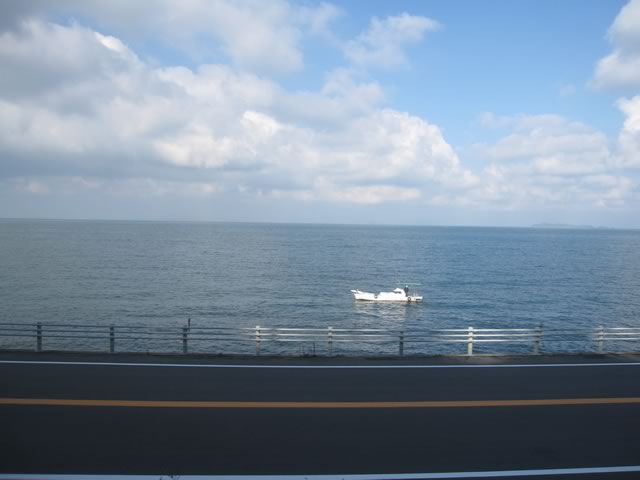 伊予長浜を過ぎると海側に出,風光明媚な車窓が続きます。