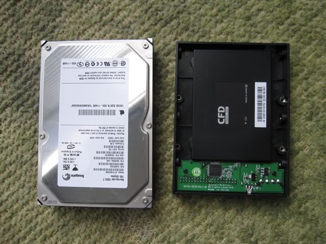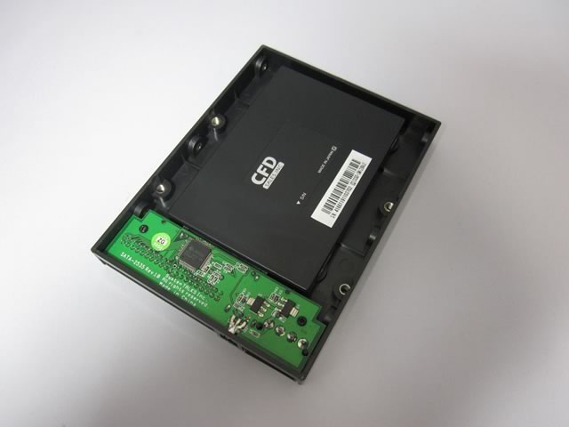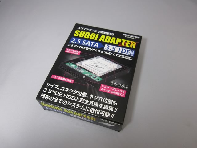 今回は変換アダプタにシステムトークス製“SUGOI ADAPTER 2535”を使用し,SSDはCFD販売製“CSSD-SM128NJ2”を用います。“SUGOI ADAPTER”は,2.5インチのSATAドライブを3.5インチのPATAドライブに変換するアダプタ兼ケースで,マスター/スレーブの設定をジャンパピンではなくスイッチで切り替えられる優れものです。また,SSDは価格比較サイトで比較的評判がよくてリーズナブルなタイプを選びました。あまり高速なSSDを使ってもPATAの転送速度(133MB/s)がボトルネックになるからね。