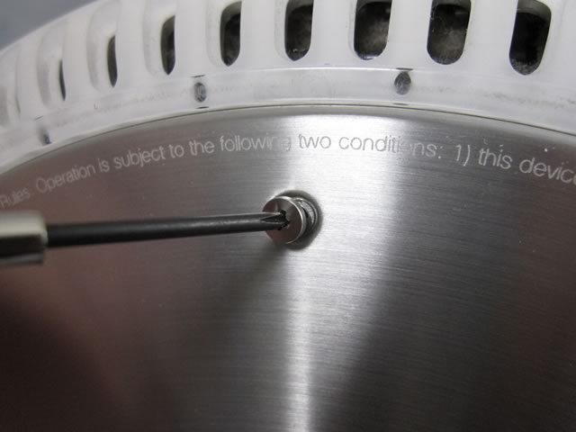 いよいよ保証対象外となる台座の分離作業を行います。最初に4ヵ所あるネジをトルクスドライバ(T15)で回します。ネジはかなり長いので根気よく回しましょう(笑)。ネジか取れたら台座の切れ込みを90度ほど回しながら引っ張ります。すると,マザーボードが徐々にみえてくるので作業しやすいようにATAケーブルを外します。