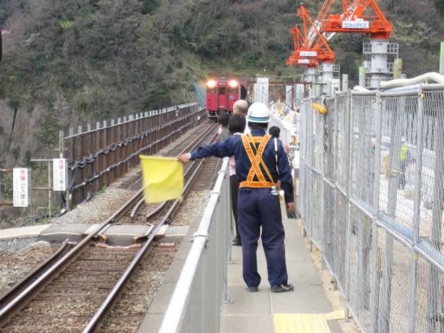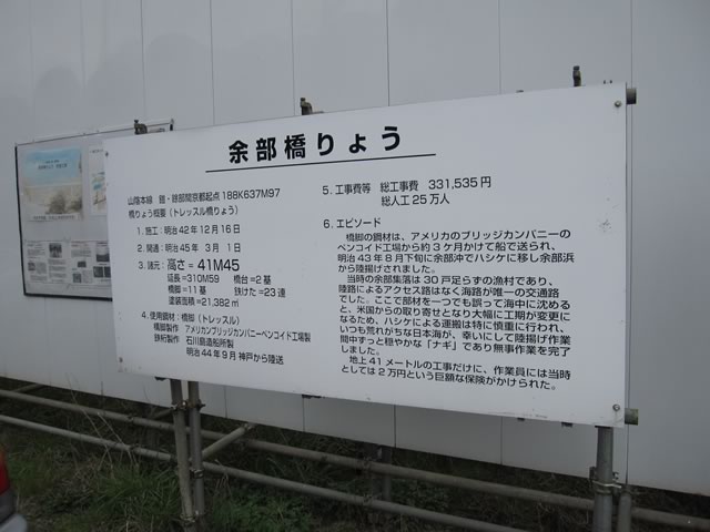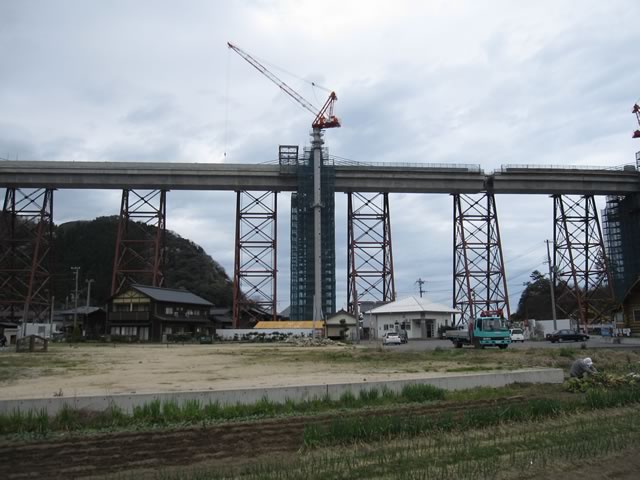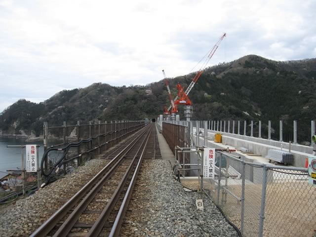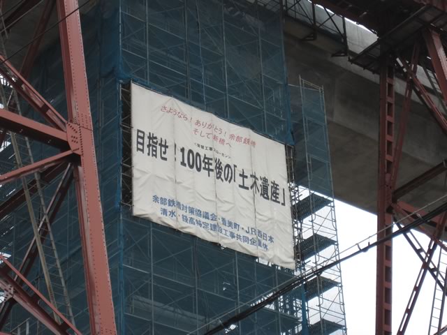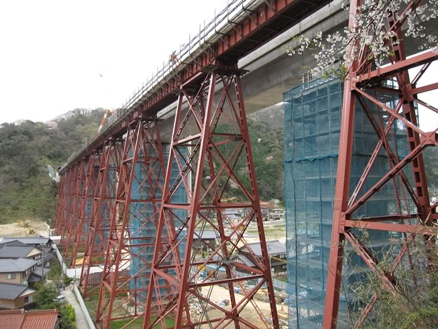 てっきり新しい橋は別の場所に建設し,そちらに線路を曲げるのだと思っていたのですが,わざわざ現在位置まで移動させるようですね。そのため,7月17日から8月11日まで区間運休するのだとか(ソース)。ちなみに現在は橋梁は,餘部駅側の80mほど部分保存するそうです。