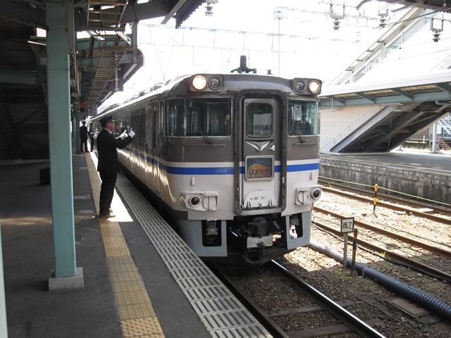 途中の豊岡までぜーたくにも特急はまかぜ号を使う。コチラも現行車両(キハ181系)の新型への置き換えが決まり,引退まであまり時間がないからね。
