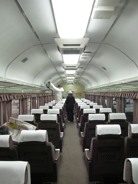 きたぐに号は以前も乗ったことがあるけど,普通席にグリーン席,B寝台三段ベッドにA寝台といった具合に非常にバラエティに富んだ車両構成ですね。今回もB寝台のいわゆる“パン下中段”を利用しました。