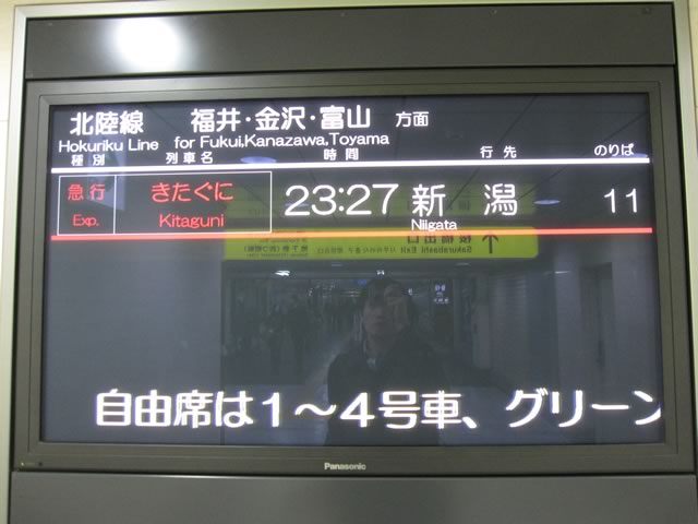 金曜日の大阪駅にて。ここから夜行急行列車きたぐに号に乗車します。きたぐに号は今後も当面健在(なハズ)です。