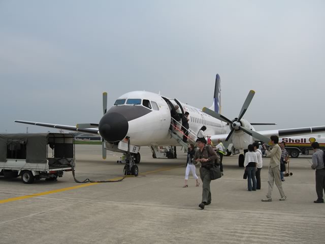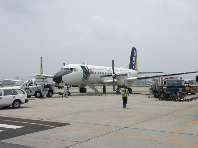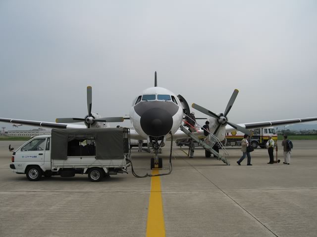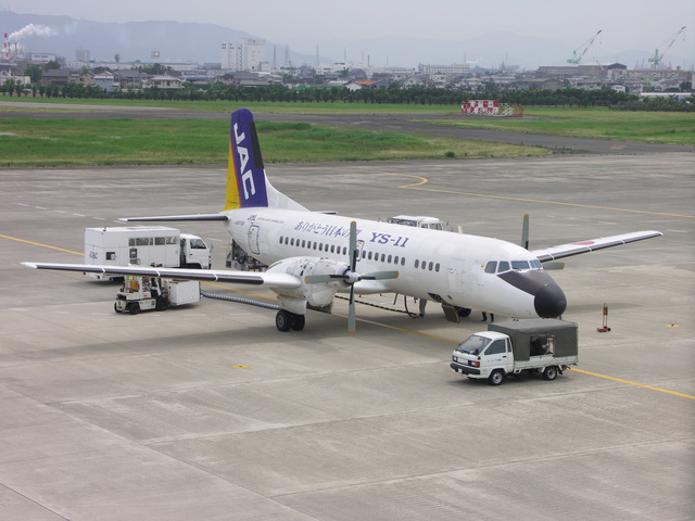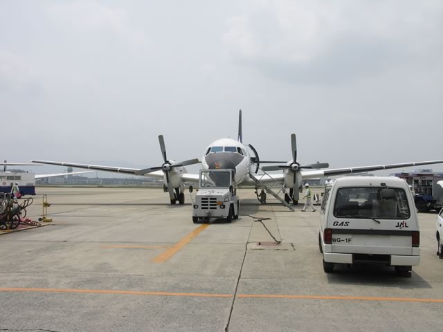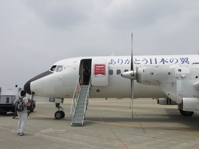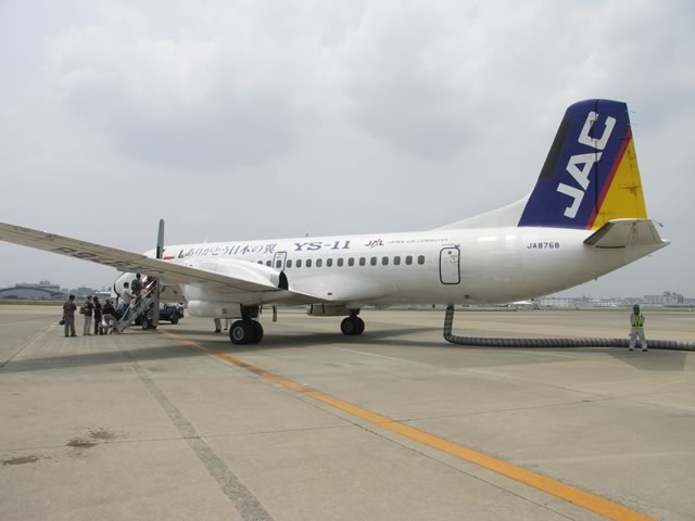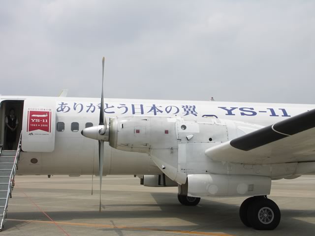 国産旅客機YS-11の国内民間航路からの引退が9月30日と迫り,YS関連のイベントも盛んなよーですが,そんな折,4ヵ月ぶりに乗ってきました。今回搭乗した路線は,福岡−徳島。何でも9月末までの毎月11日にYSへ乗ると特別な搭乗証明書がもえらると聞きつけ,ちょうど週末が11日になる6月を狙って飛んできたのですね〜(^ ^;)。そんなわけで,新幹線なら2時間ちょっとで博多−姫路間を移動できるところを,5時間かけて福岡空港−徳島空港−連絡バス(松茂乗り換え)−高速バス(淡路島経由)−舞子−姫路というルートで帰ってきた次第です。