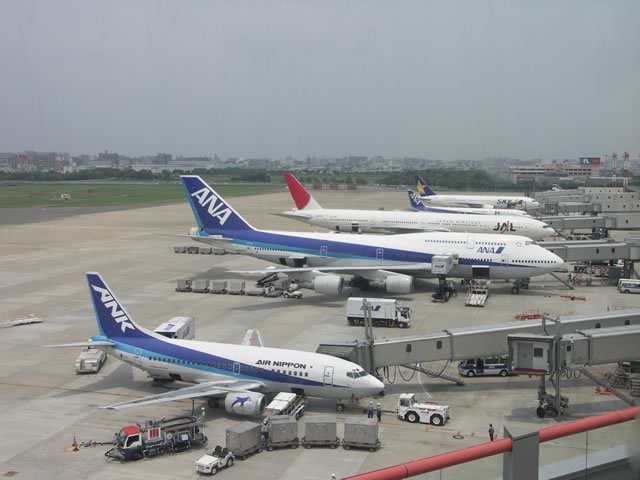 福岡空港の展望デッキにて。いつの間にか改装されていましたねー。ただ,以前と同様,アクリルで前面展望を被ってしまっているため,撮影には不適! 鹿児島や伊丹を見習ってくれ〜(笑)。