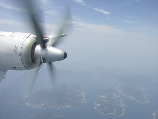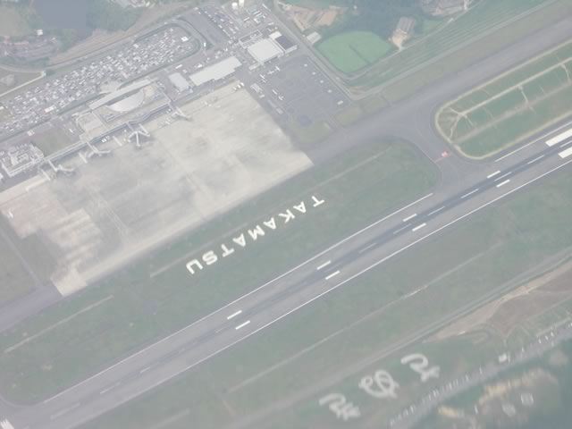 ちょっと分かりにくいけど,高松空港の上空。高松空港に隣接する公園“さぬきこどもの国”には,ANKで使われていたYSが静態保存されていたりもします。