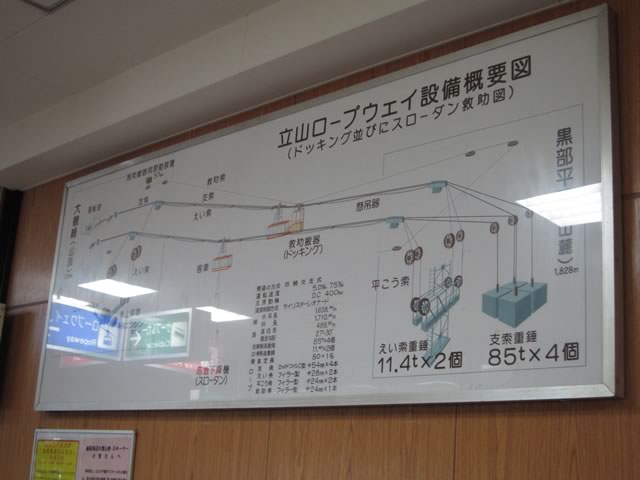 黒部平駅ではさらに立山ロープウェイに乗り換え。支柱が一本もないのでスリル(?!)満点。