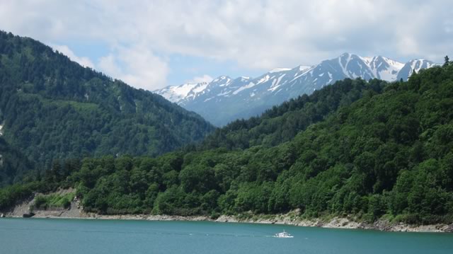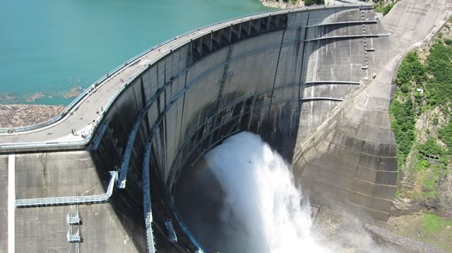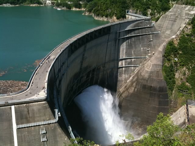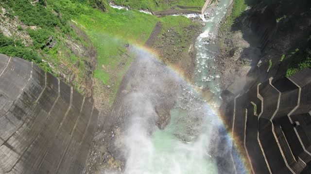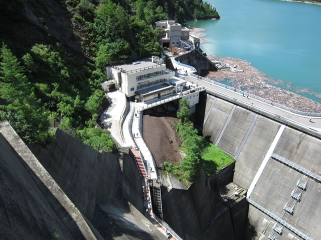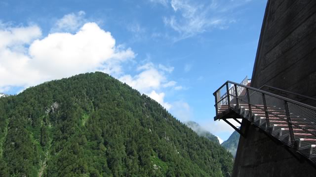 地下から220段の階段を上って展望台へ。外へ出ると,黒部ダムが目の前に。ここは本当に日本なのか〜。