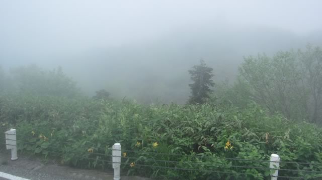 高度差が大きいので植生もみるみる変わっていく。ザンネンながら途中から霧を被ってしまったため,外の景色はあまり見えず。