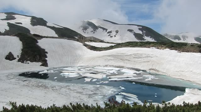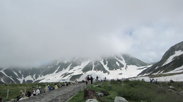 ロープウェイを除くと日本最高地点の鉄道駅(2,450m)となる室堂駅に到着。付近を散策。