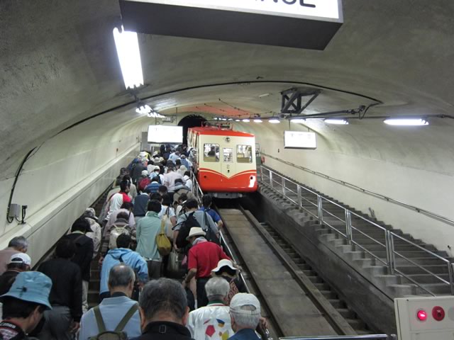 黒部ダムの堰堤を15分ほど歩き今度は立山黒部貫光鋼索線(黒部ケープルカー)黒部湖駅へ。ケーブルカーが全線地下なのは珍しいですね。