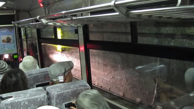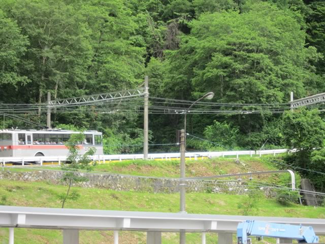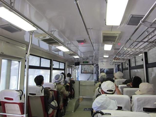 トロリーバスは6台編成。朝早くにもかかわらず,思ったよりも乗客がいました(車内の写真を撮った後,一挙にお客さんが増えた)。