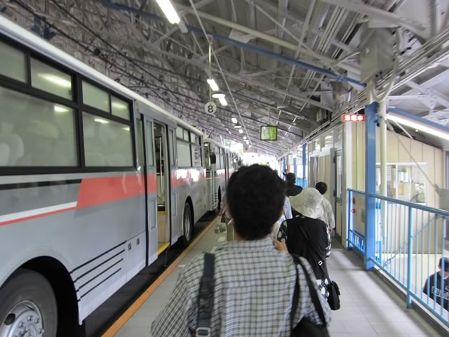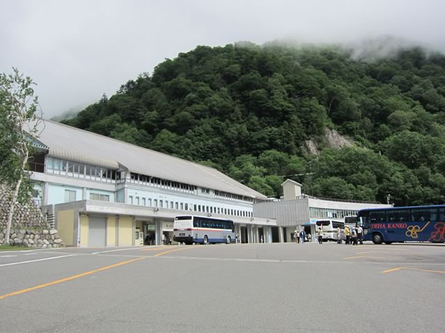 大町側からのスタート地点とる関電トンネルトロリーバス扇沢駅。