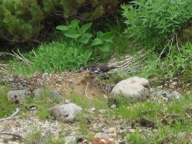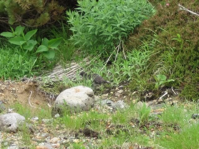 普段は茂みに隠れているのでなかなか見ることのできない雷鳥を一瞬だけ目撃。夏毛にかわっているので,周囲と区別がつかない(笑)。