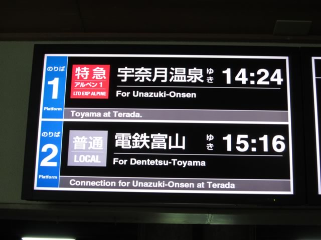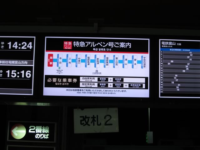 ところでアルペン特急でこの寺田駅と隣の上市駅で2回もスイッチバックするのですな。おかけで座席を転換しなくても,ほとんどの区間前向きに座れるワケだけど。