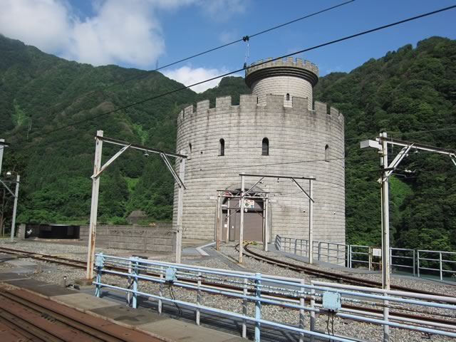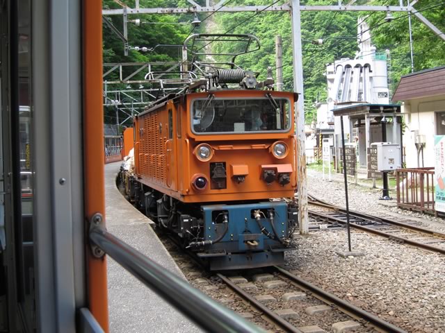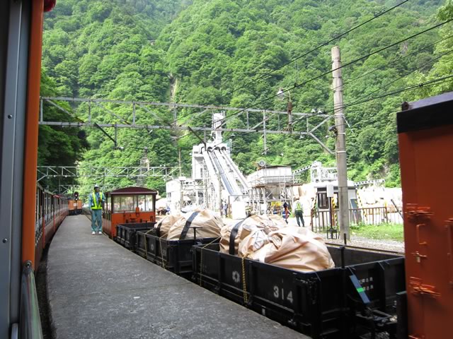 そしてある意味秘境駅ともいえる欅平駅へ到着。20kmの道程を片道1時間20分かけて走るとは路面電車並の表定速度ですな。もっともトロッコの運休する冬場は,根治関係者は6時間かけ徒歩でここまでやってくるみたいだけど(線路の真横にトンネルが続いている)。