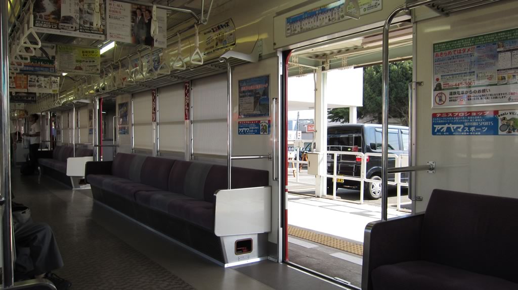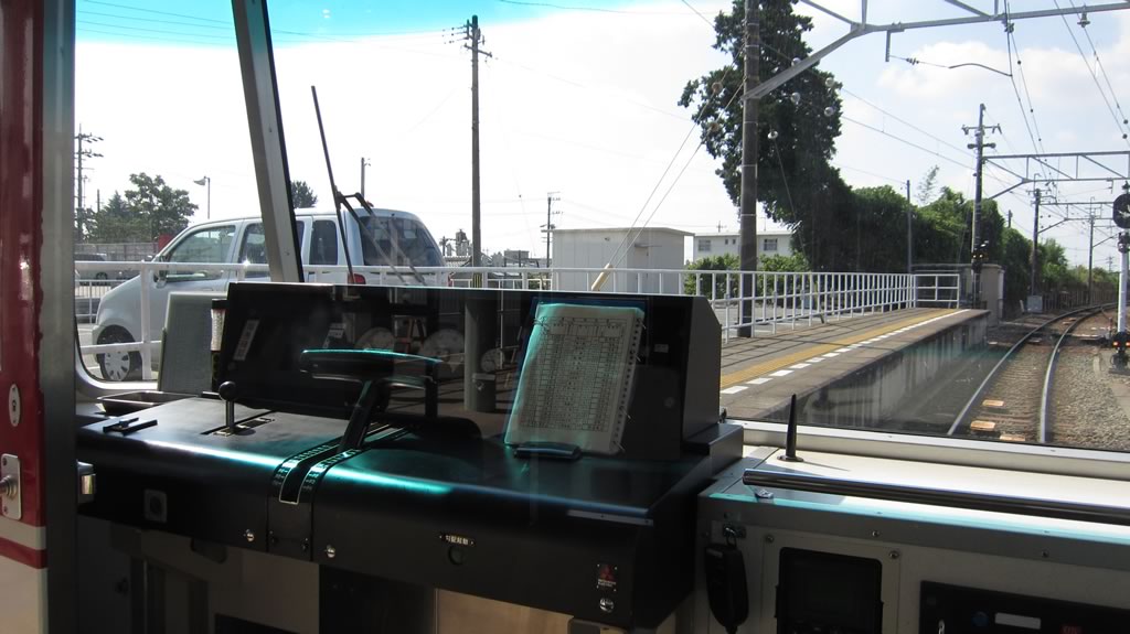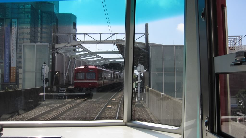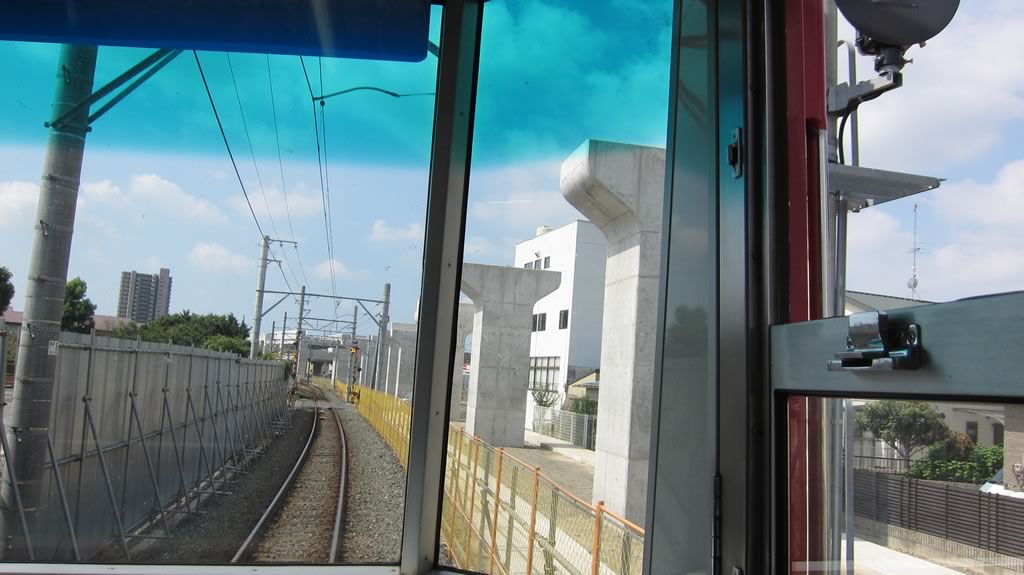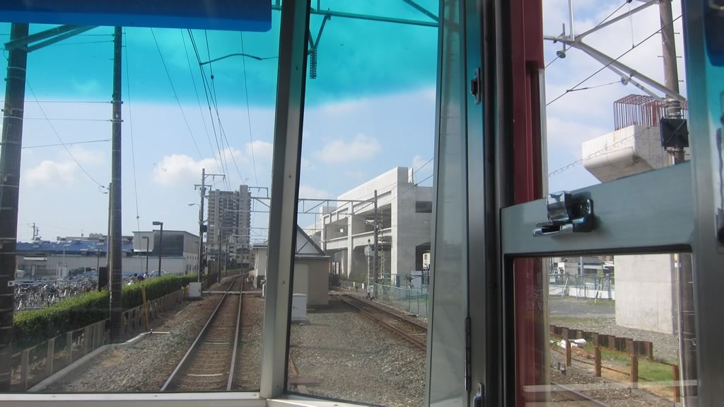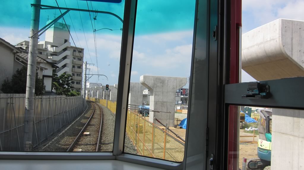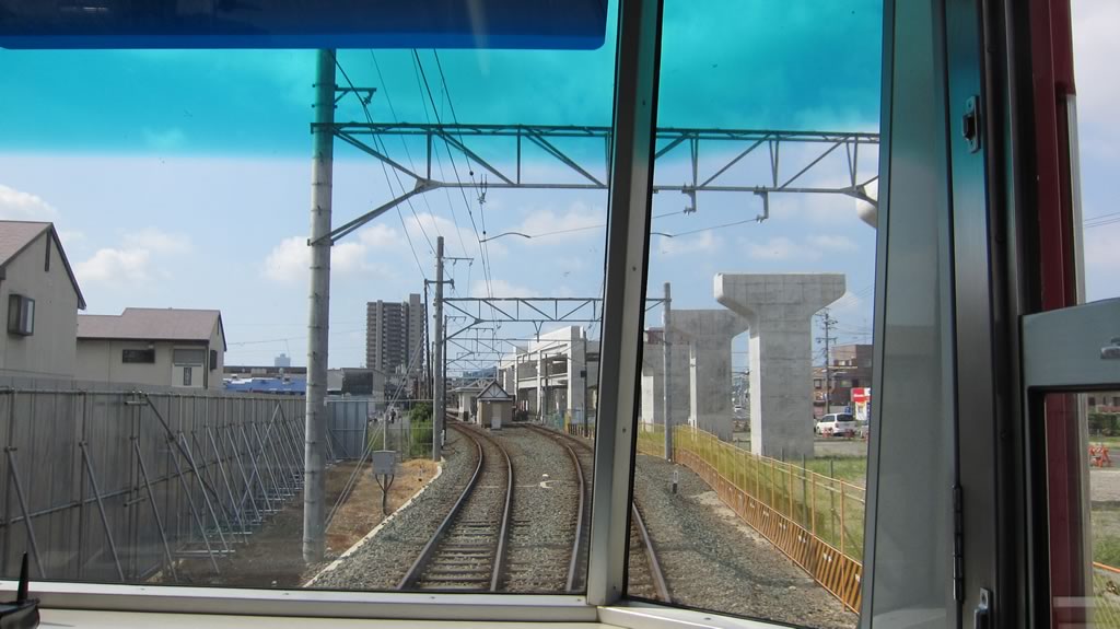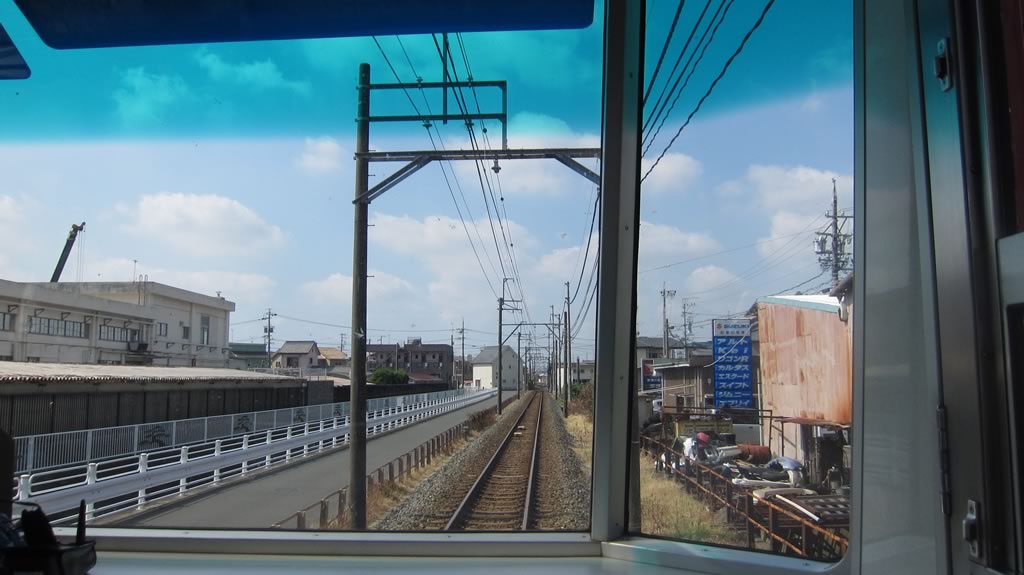 遠州鉄道の前方風景。地方鉄道にしては,乗客が多いです。単線ながら運行本数も多いし,高架工事も着々と進んでいる。