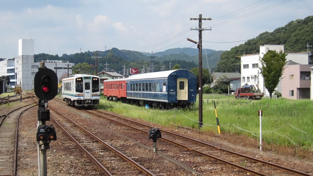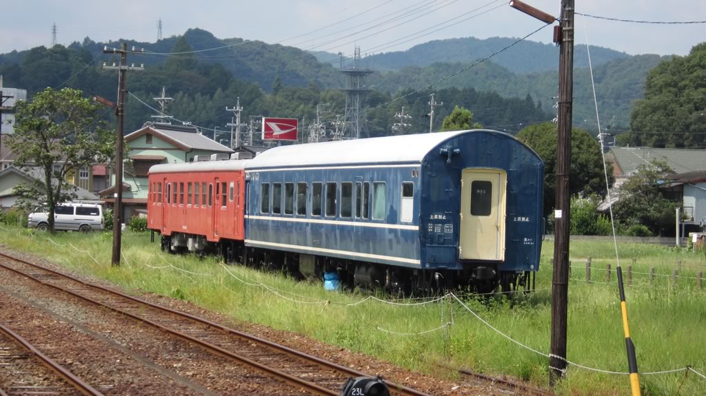 天竜二俣駅の構内には,昔の客車とキハ20が野ざらし(?!)に。