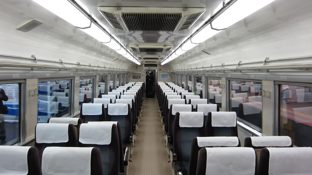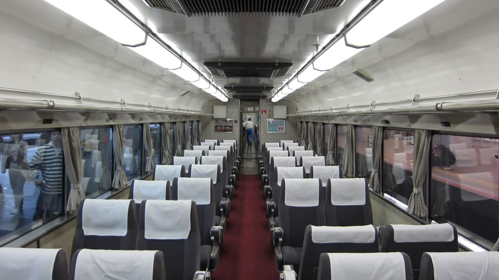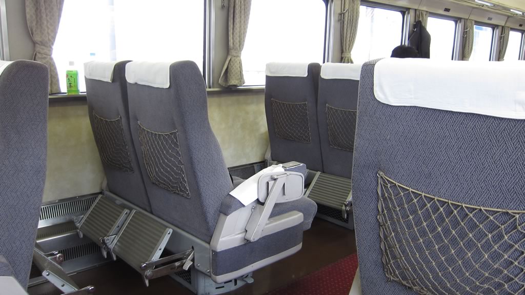 最初で(たぶん)最後のキハ181系グリーン車…でも,座席はフットレスト以外普通車とほとんど大差ないような…。