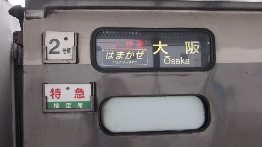 国内の気動車特急型車両としては最古の部類であり,キハ181系としても現在唯一の定期運用となる特急はまかぜ号が,来る11月7日より最新のキハ189系に置き換わるため,もう一度国鉄特急“臭”を味わいたく,姫路−大阪間で乗車してきました。姫路−大阪間の所要時間は新快速よりも遅い(68分)にもかかわらず特急料金を払って乗るのは物好き以外の何者でもないケド,置き換え先のキハ189系にはグリーン車が設定されていないこともあり,あえてキハ181系グリーンに乗車してきた酔狂でありマス(笑)。