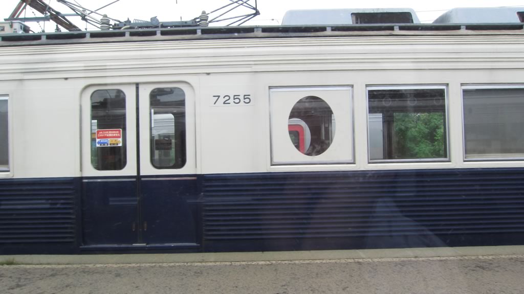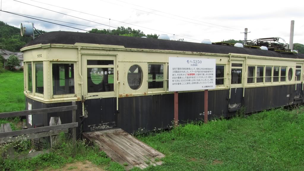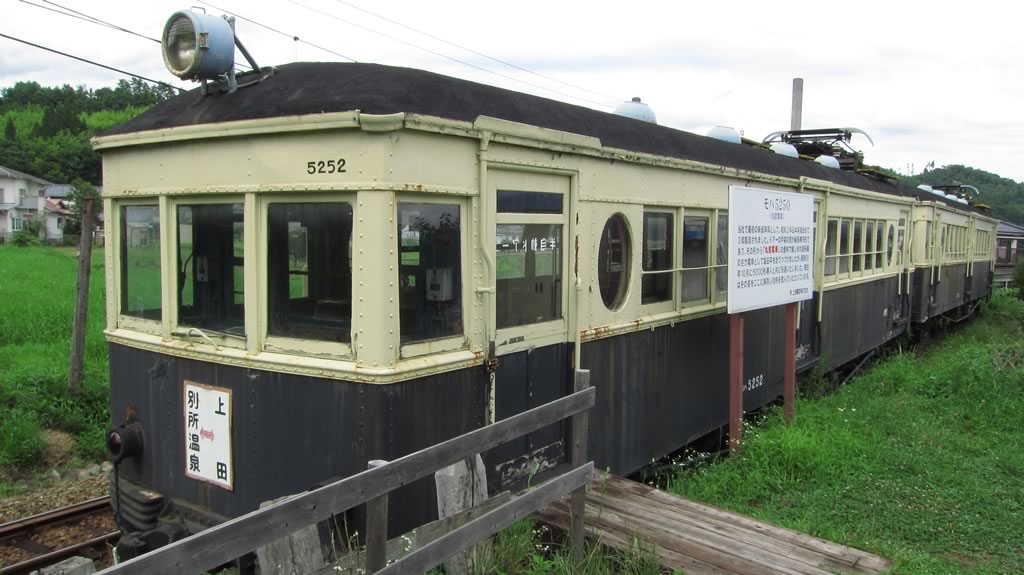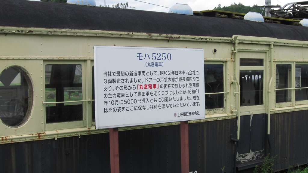 終点別所温泉駅構内には,(コチラは)本物の丸窓電車が留置されていました。