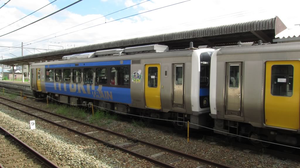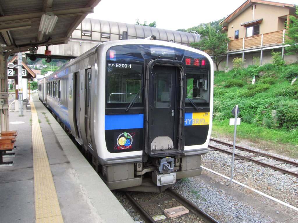 駅で折り返し列車を待っていると,やってきたのはハイブリッド気動車ことキハE200がやって来た! ラッキー。