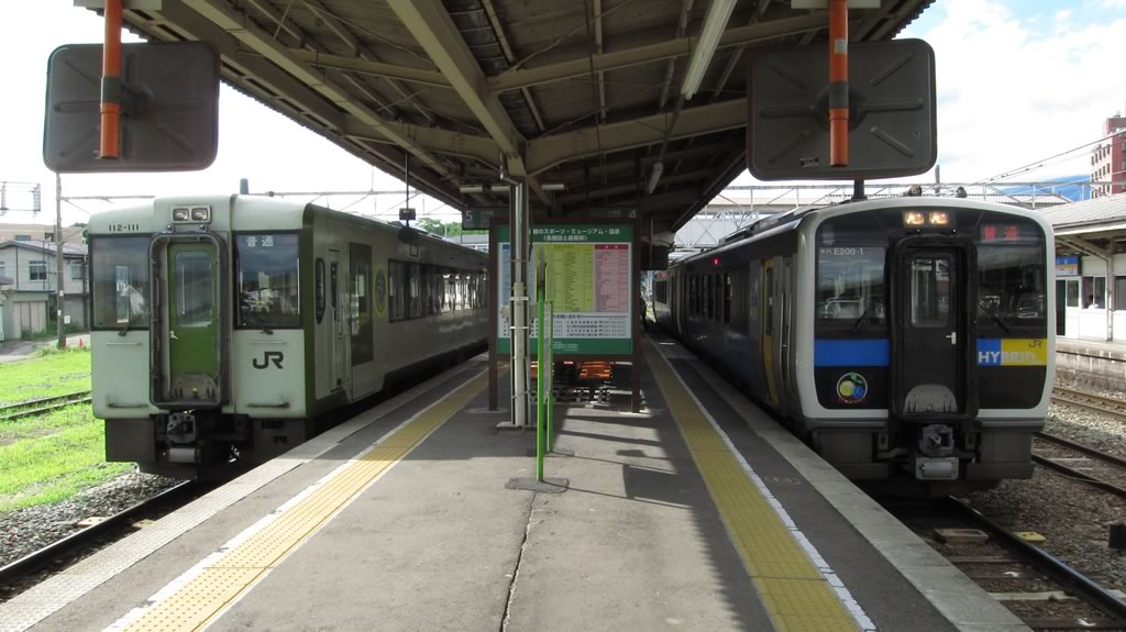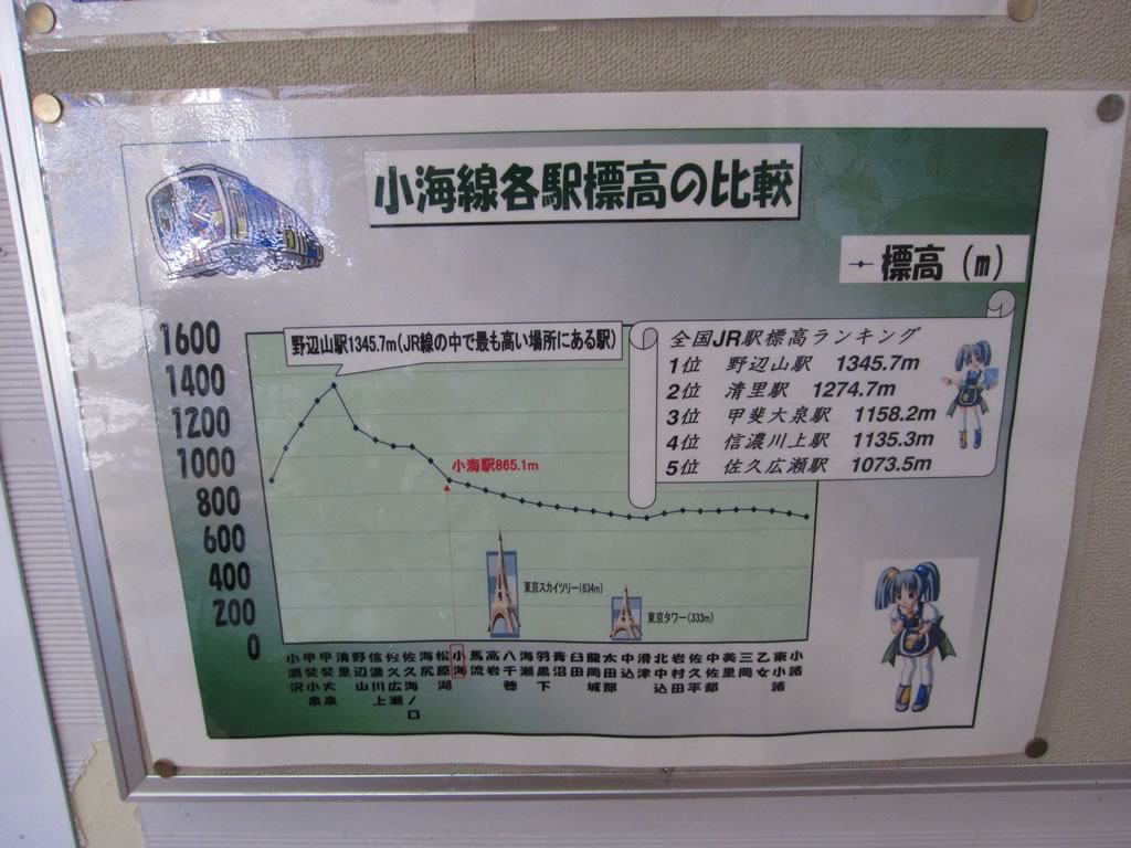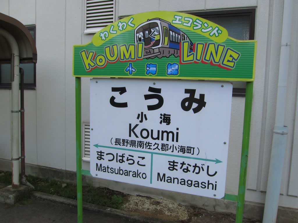 1時間ほどで小海駅へ到着。小諸からだとずっと上り勾配が続いているからか,ハイブリッド気動車とはいえずっとエンジンが呻りっぱなしでしたね(エアコンも全開だったし)。
