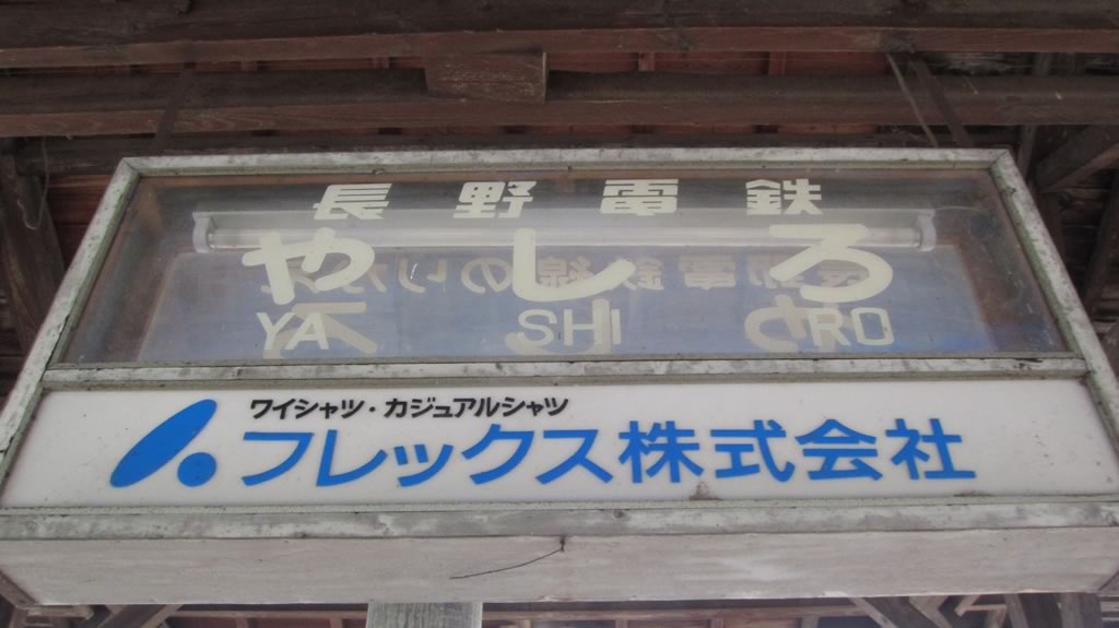 終点の屋代駅には,2002年に廃止された木島線の名残ともいえる「木島方面」の案内が残っていました。