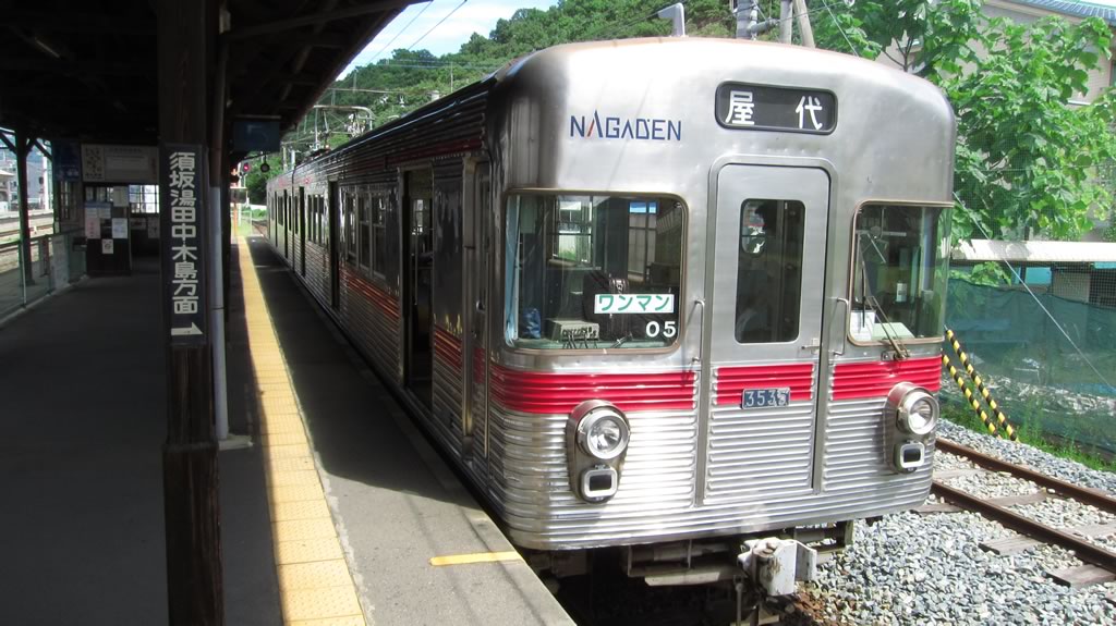 40パーミル近い勾配を昇り,終点湯田中駅へ。温泉に入りたいところだけど,時間もないのですぐ引き返す(苦笑)。