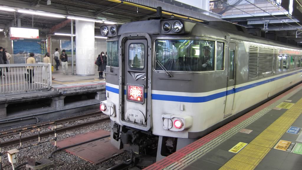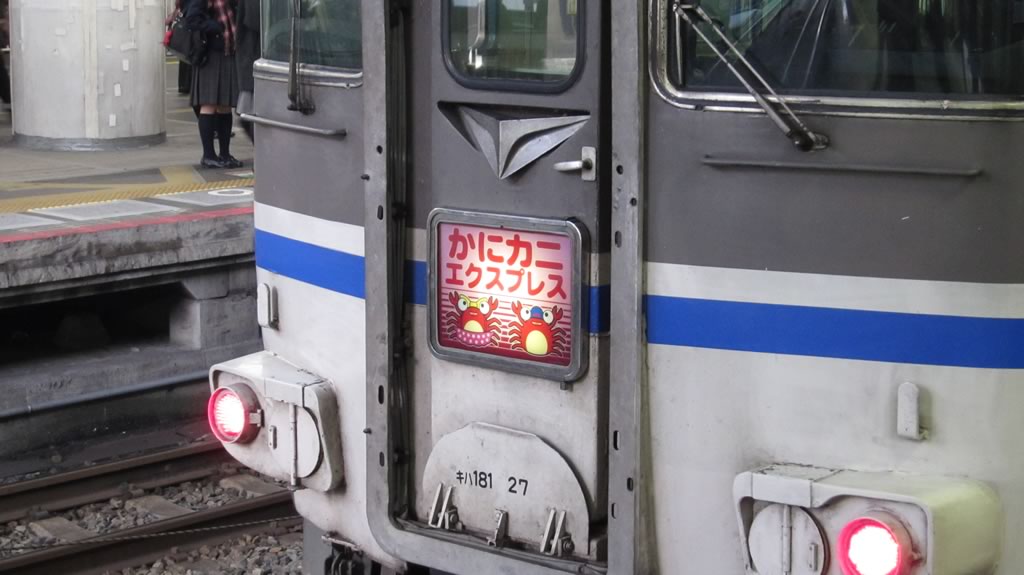 スリーデーパスを使った東北テツ旅も終わり,大阪からは新快速で帰ろうと思ったところ,湖西線が強風のため運転見合わせになっておりダイヤが大幅に乱れていたので,ちょうどいい時間にあった特急かにカニはまかぜ号(カニシーズン限定の臨時列車)で帰ることにしました。