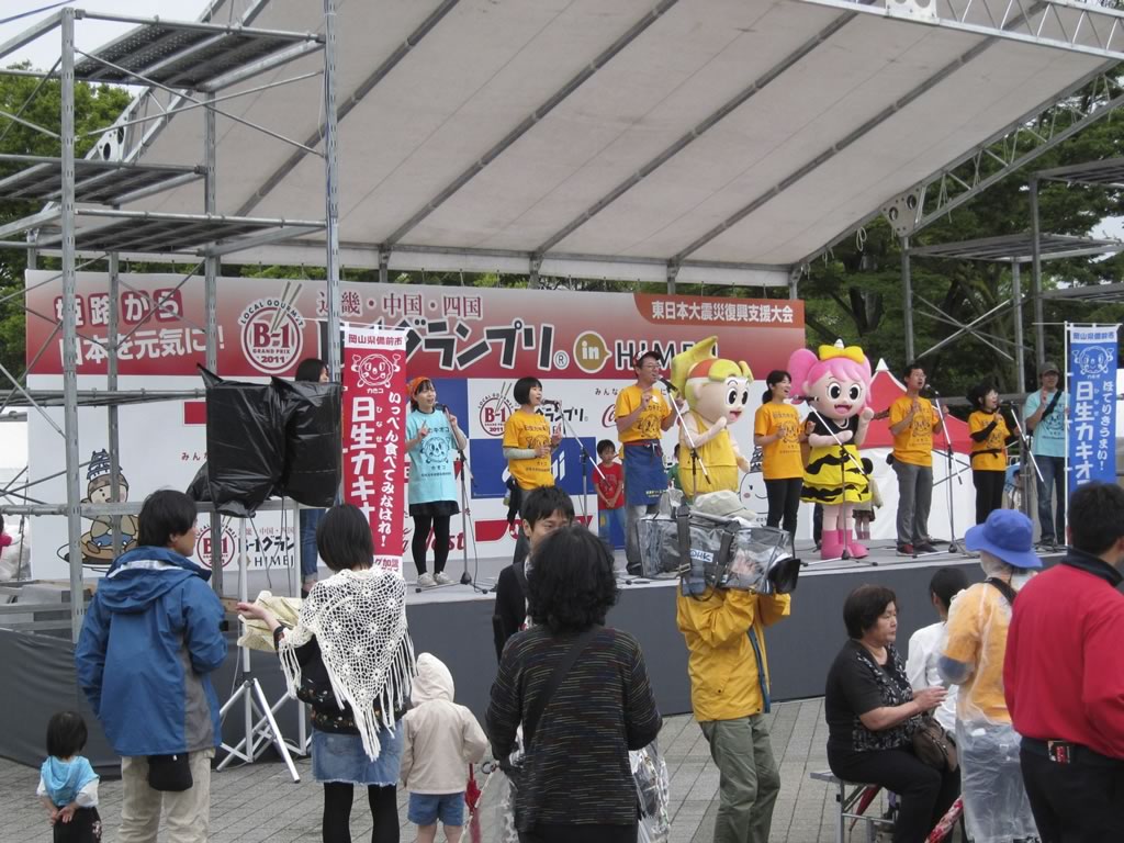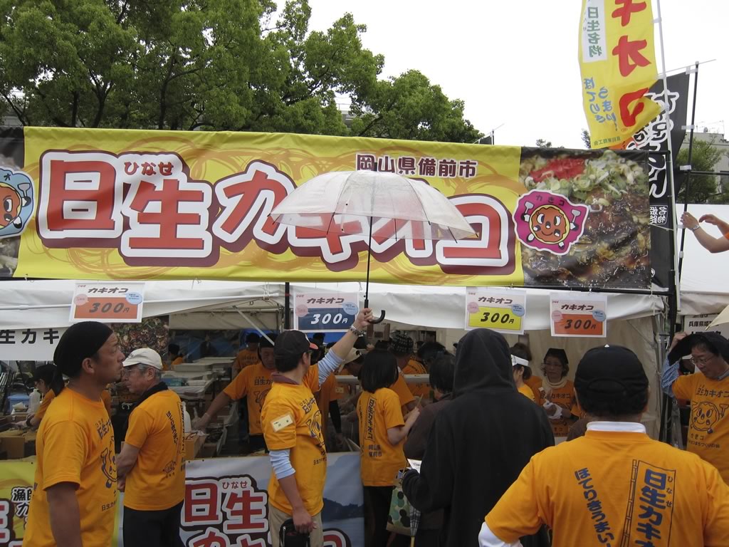 今週末,姫路城の近くの公園で近畿・中国・四国地方のB級グルメを集めたイベントが開かれたので,ちょっと覗いてみました。何でも秋に6回目となるB級グルメの全国大会が姫路で開かれるらしく,その前哨戦だったよーです(同じ場所で全国大会を開催するのかは不明)。