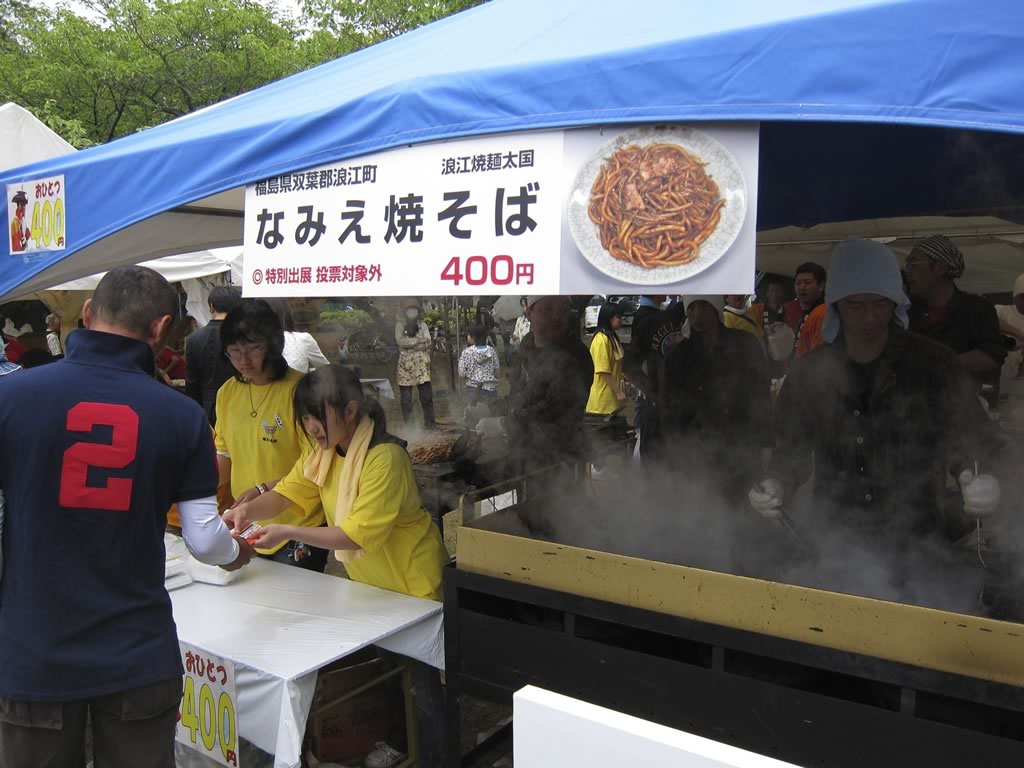 石巻市と浪江町から二団体がゲスト出店していました。石巻焼きそばは昼前には完売。ちなみに私が食べたのはなみえ焼きそばなる極太麺の焼きそば。もはやほとんど焼きうどんでしたね,ハイ。