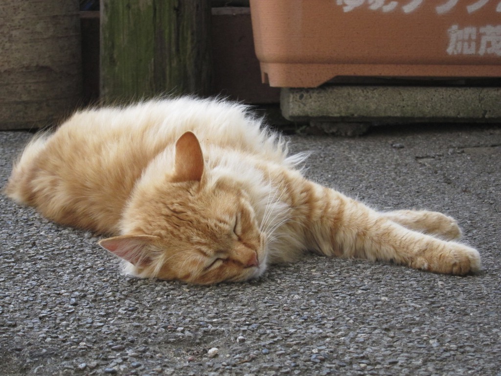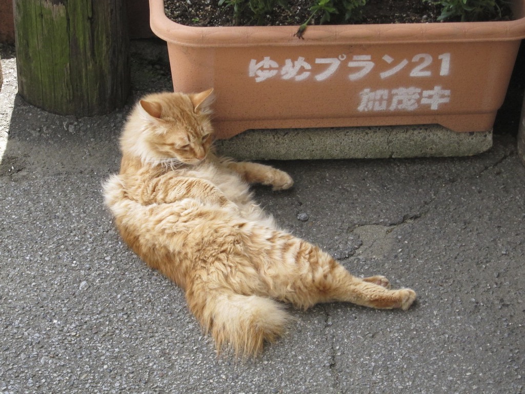 んでもって待ち時間,“駅猫”と戯れる(笑)。飼い猫なので人なつっこいこと。弁当のおかずを食べられてしまいました。