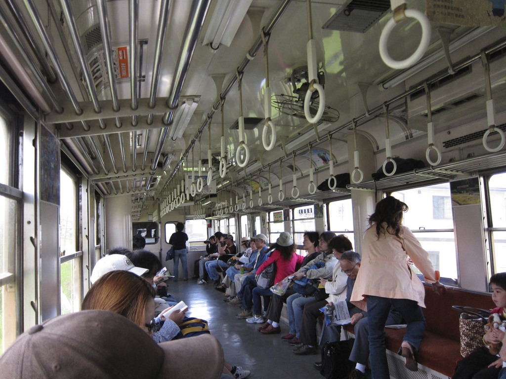 天気がよかったからか,車内は思った以上に混み合っていました。