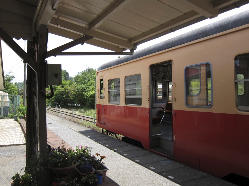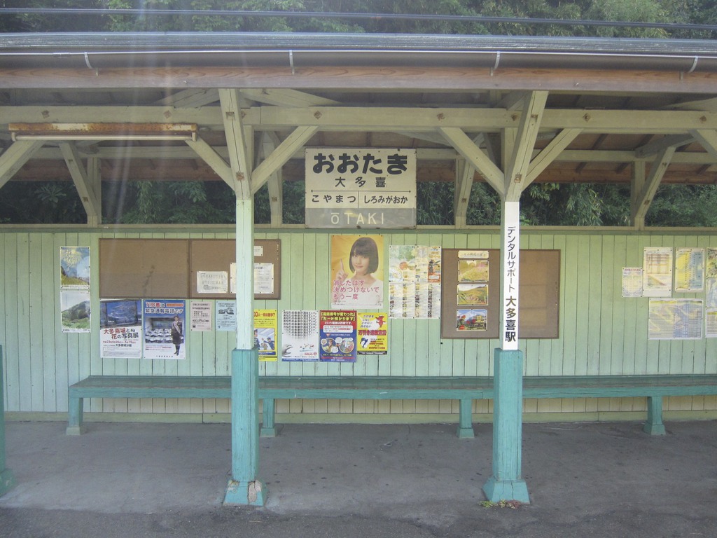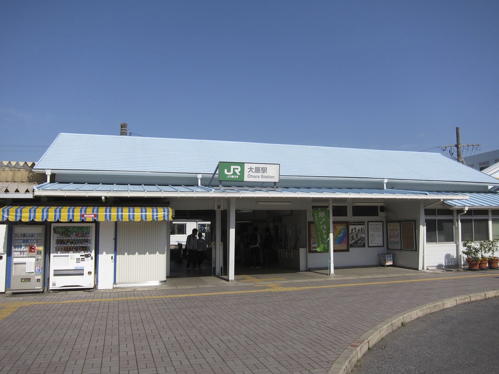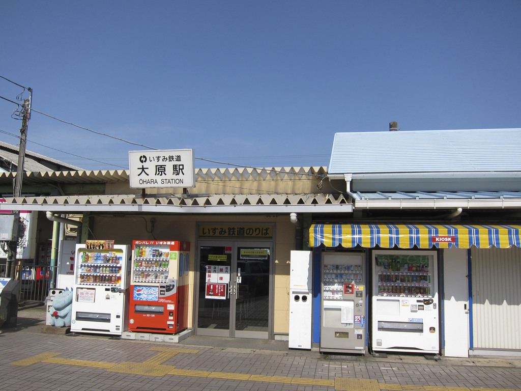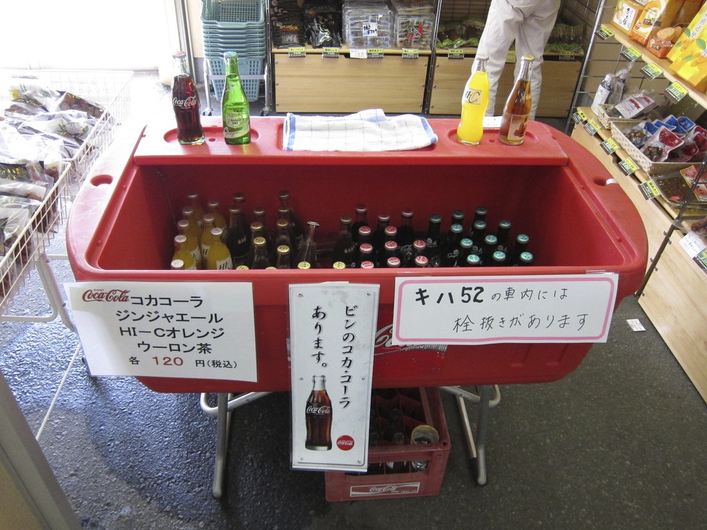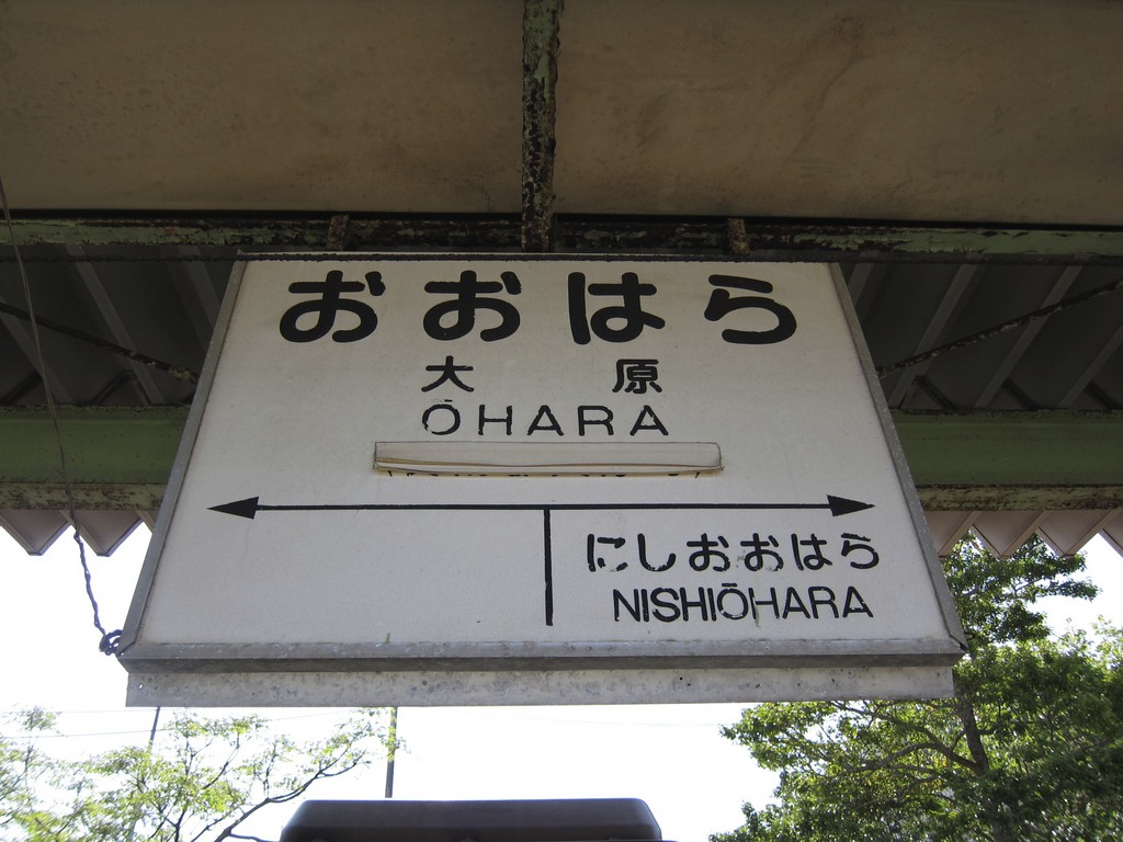 大原着。改札直結の売店で売っていた瓶ジュースのボックスに「キハ52の車内には栓抜きがあります」の説明がウケた。