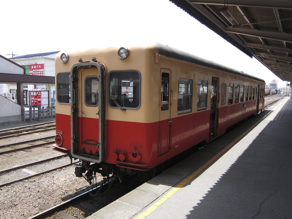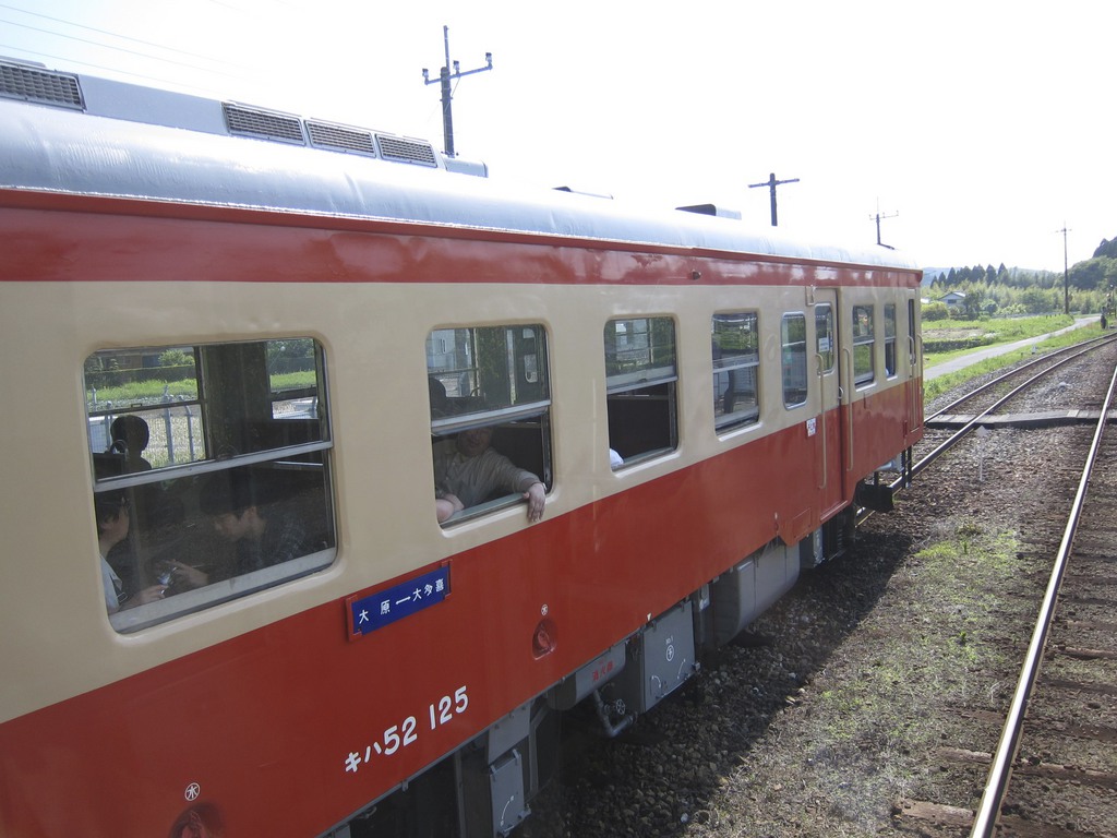 途中の駅で,国鉄色のキハ52と遭遇。最近いすみ鉄道がイベント用に大糸線で走っていた車両を購入したそうです。