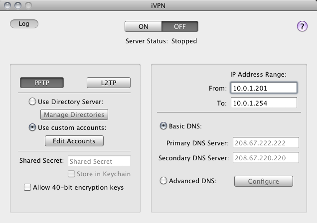 んでもって,VPNサーバにするマシン上でiVPN.appを立ち上げ,シリアルナンバーを入力します。
