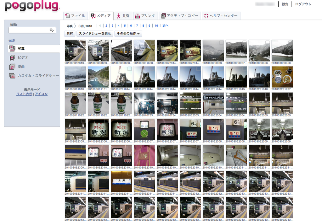 WebブラウザからPogoplugにアクセスすると,写真や動画をサムネール表示してくれます。が,メタデータの生成には相当時間がかかりますので(一度できてしまえば,レスポンスはよくなる)。