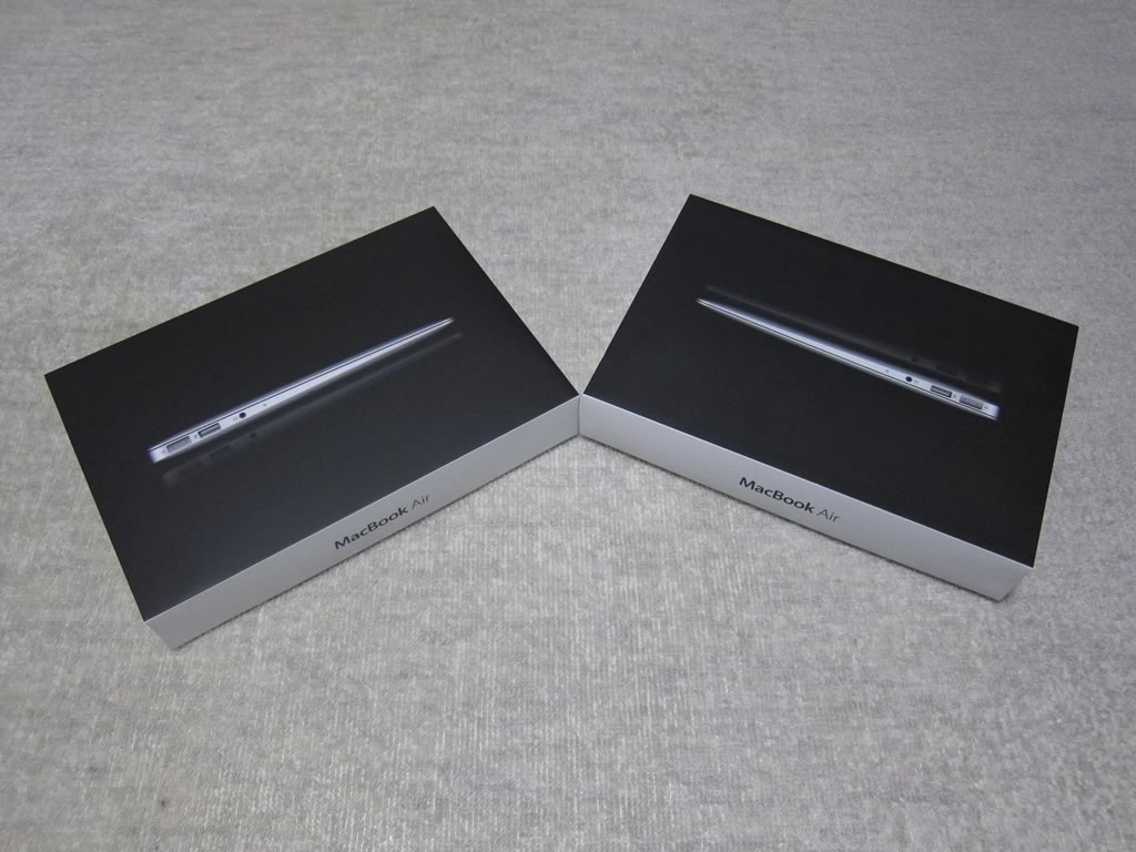 Mid 2011はインストールUSBメモリがつかないことを除けば,外箱も付属品の構成もLate 2010とまったく同じっぽい(左箱:新モデル/右箱:旧モデル)。