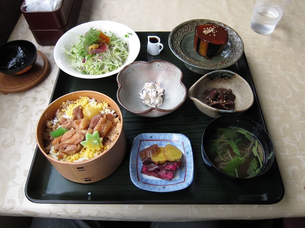 大館着。近くの駅弁店のレストランで“特上とり飯御前”をいただく。この内容で1,100円は安い。鶏飯駅弁といえば「東の大館,西の折尾」と言われているだけあって美味でした。
